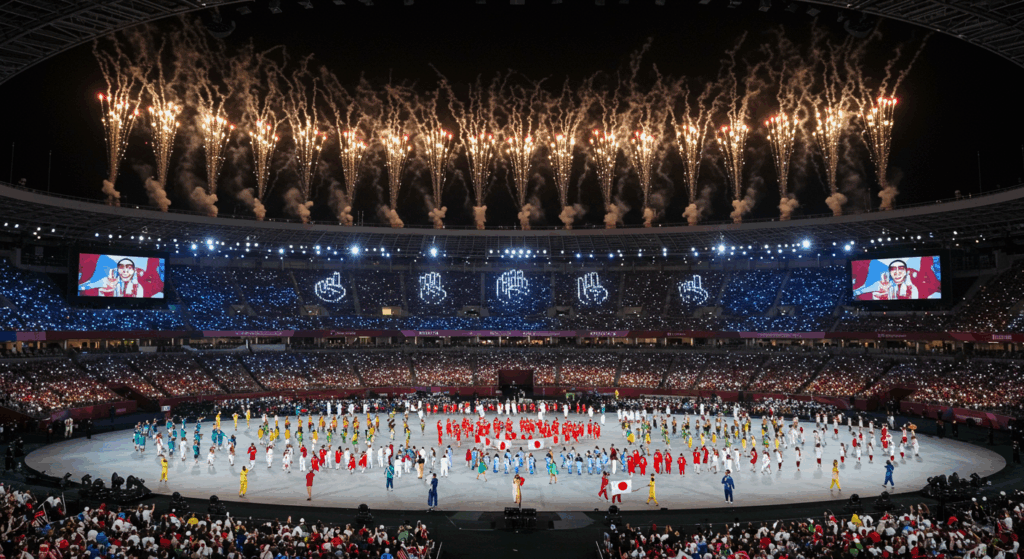 大橋弘枝氏と近藤良平氏による先駆的な共同演出、アーティスティックプログラムの参加型という性質、そしてサインエールのような革新を通じて、式典は、自らが推進しようとする共生社会の理想そのものを体現する舞台となります。2時間30分の開会式と1時間30分の閉会式という限られた時間の中に、100年の歴史と未来への希望が凝縮され、視覚的なスペクタクルとして展開されます。