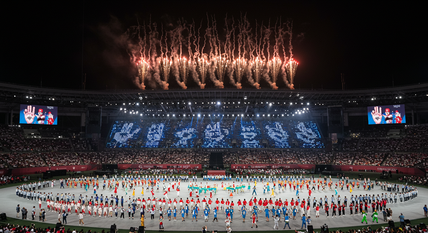 このレベルのコミットメントは、パフォーマンスが単なる装飾的な間奏ではなく、式典の物語において不可欠で、複雑かつ高度に同期されたものであることを強く示唆しています。何ヶ月もの準備期間を経て磨き上げられた演目は、大会の理念を視覚的に表現する芸術作品として、観客に深い感動を与えることでしょう。
