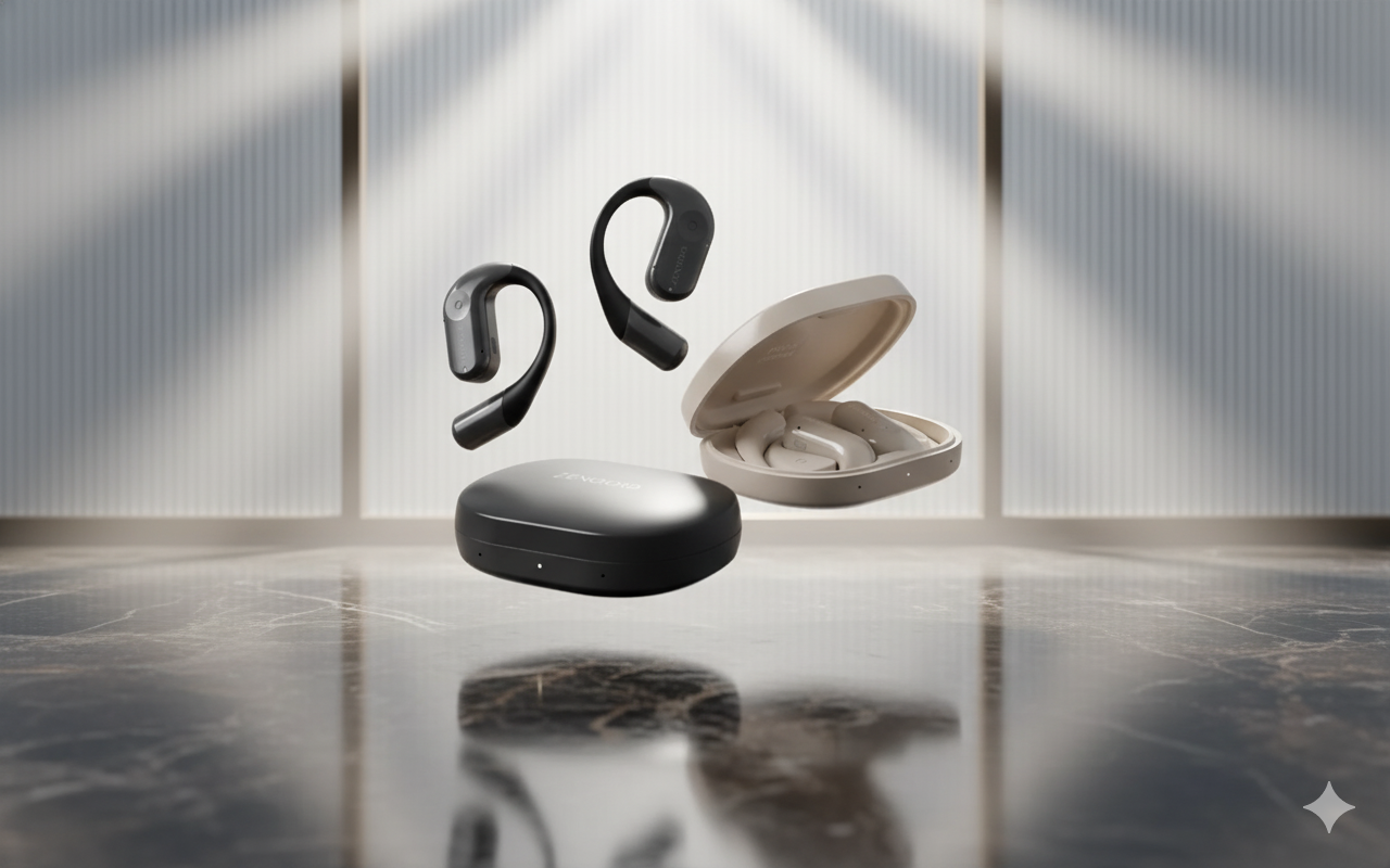 Zenchord 1はオープンイヤー型のデザインを採用しており、耳を完全に塞がない構造になっています。これにより、長時間の装着でも圧迫感が少なく、蒸れにくいというメリットがあります。片耳あたりの重量は約10gと非常に軽量で、多くのユーザーが一日中着けていても疲れないと評価しています。