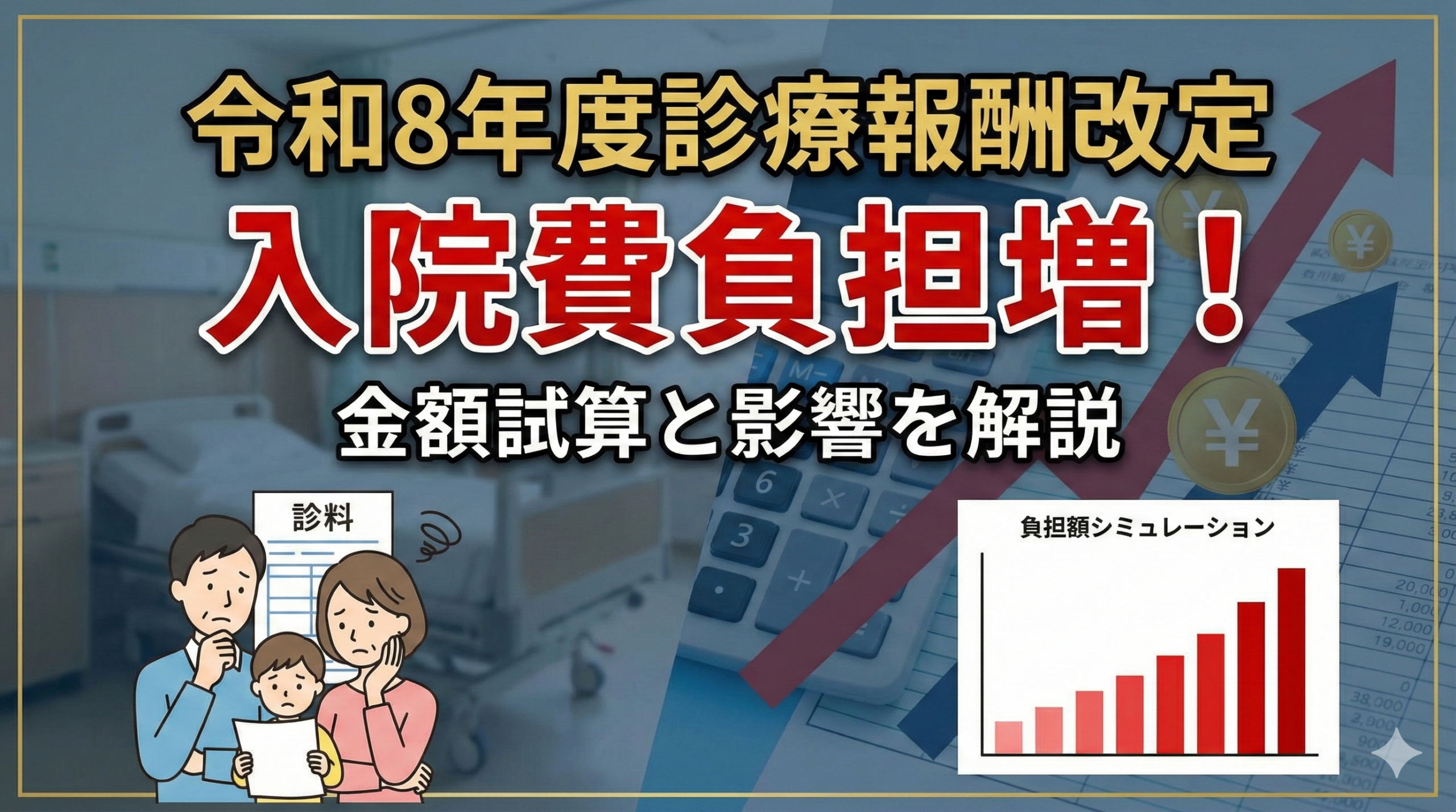 令和8年度改定は、医療従事者の賃上げ対応や医療DX推進のコストを「誰が負担するのか」という問題に決着をつける歴史的な転換点となります。これまでの診療報酬改定とは異なり、患者負担、とりわけ現役世代の中間所得層から高所得層にかけての入院費負担が構造的に引き上げられることが確実視されています。本記事を読むことで、改定の全体像、具体的な負担増の金額、そして家計を守るための対策について理解することができます。