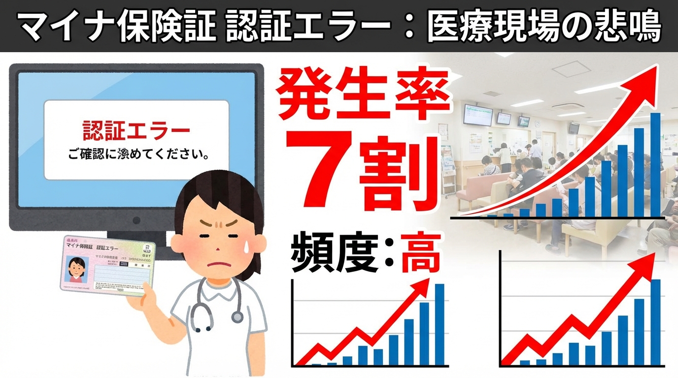 2024年12月2日に現行の健康保険証(紙やプラスチックカード)の新規発行が停止され、2025年12月2日には経過措置も終了しました。この移行期において、認証エラーの頻発は医療機関経営を直接的に脅かすリスクとなり、現場スタッフの疲弊や患者との信頼関係の毀損に直結しています。本記事では、マイナ保険証の認証エラーがなぜ7割もの医療機関で発生するのか、その技術的・構造的な原因を詳しく解説するとともに、医療現場への影響や今後の課題について包括的に分析します。