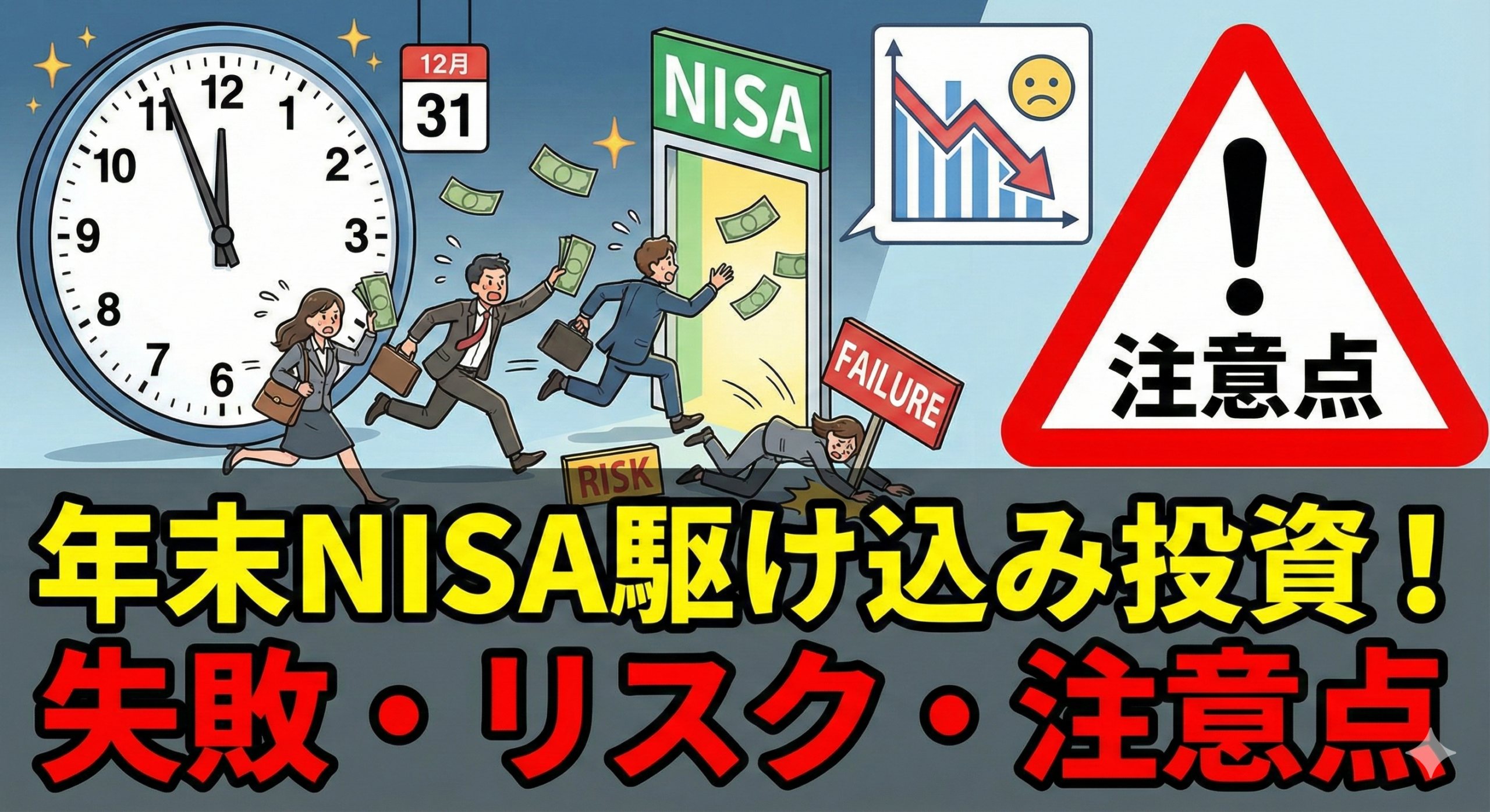 NISA年末駆け込み投資には様々なリスクと注意点があります。主な失敗例としては、受渡日の確認不足、暴落時のパニック売り、生活防衛資金を残さない過度な投資、高値掴み、配当金受取方法の設定ミスなどがあります。特に2024年8月の暴落では、新NISAで投資を始めた初心者が大きな損失を出したケースが報告されています。