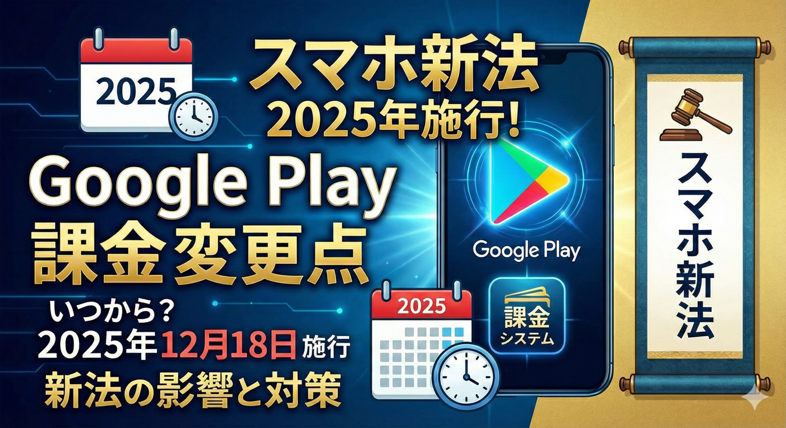 スマホ新法は2025年12月18日に全面施行され、Google PlayやApp Storeにおける課金システムが大きく変わります。この法律により、これまでAppleとGoogleが独占的に運営してきたアプリストアの課金ルールが緩和され、開発者は外部決済システムの導入やアプリ内から自社Webサイトへの誘導が可能になります。
