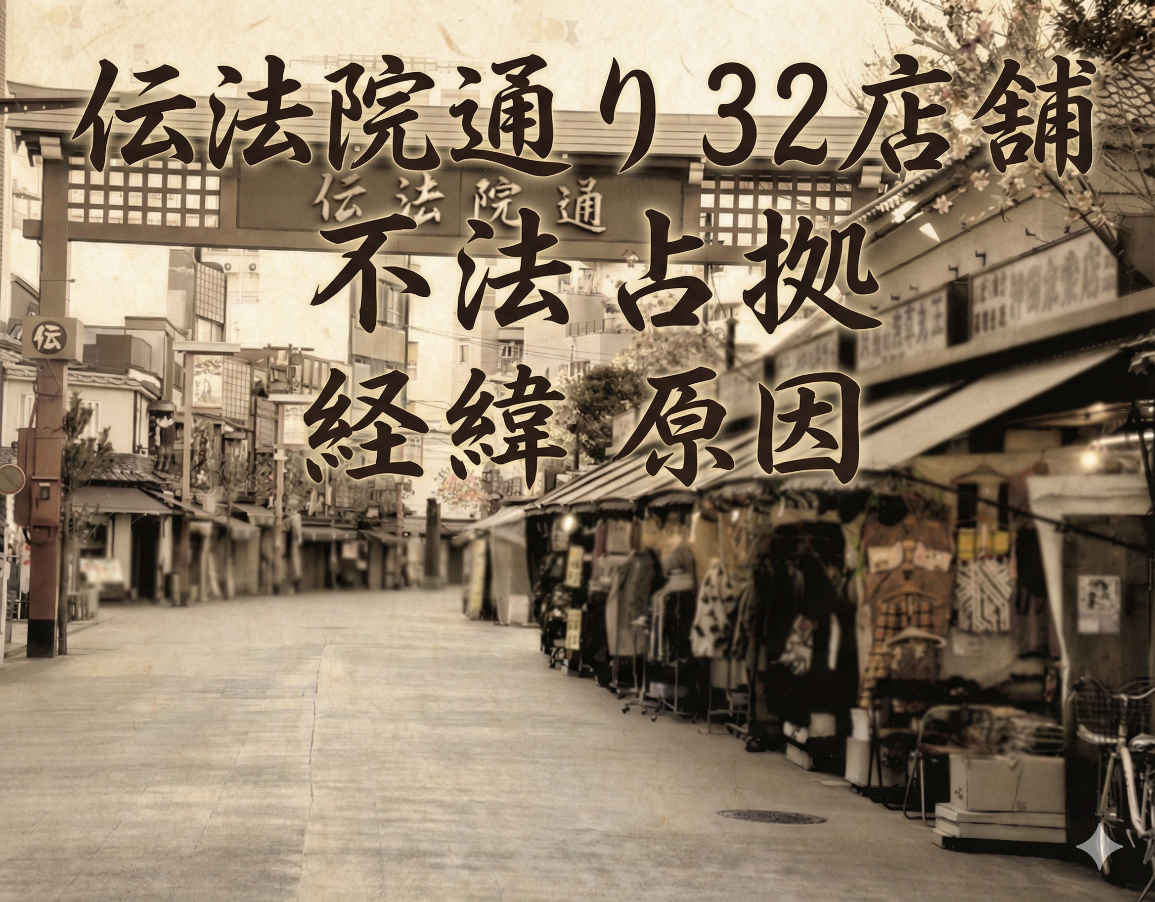 伝法院通りの不法占拠問題は、「昭和の行政手法」と「令和の法的コンプライアンス」が衝突した象徴的な事例です。年間数千万人が訪れる世界的観光地・浅草において、なぜこのような事態が発生し、長期間にわたって放置されてきたのでしょうか。本記事では、この問題の発生原因から詳しい経緯、法的争点、そして2026年の撤去に向けた動きまでを詳しく解説します。浅草という街の歴史と、都市計画における行政と住民の関係について理解を深めることができる内容となっています。