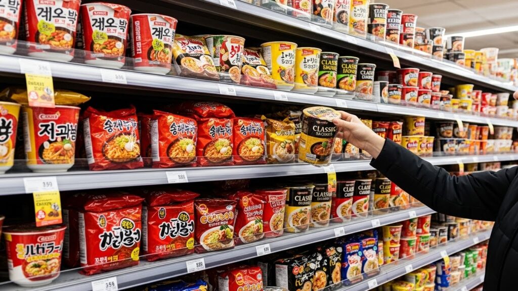 農心の成功の要因として、まずアジア系スーパーマーケットにとどまらず、ウォルマート、コストコ、クローガーといったアメリカの主要小売チェーンの棚を確保したことが挙げられます。特に「辛ラーメン」は、その赤いパッケージとともに、アメリカ消費者にとって「Spicy Ramen」の代名詞として認知されるに至りました。