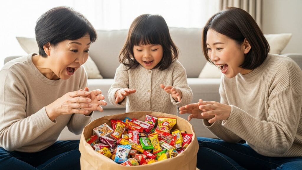 これはこの福袋が「シェア(分配)」を前提としたコミュニケーションツールとして機能していることを意味します。年末年始は帰省やパーティーなどで人が集まる機会が多く、「実家に持って行って親戚に配った」「職場の休憩室に置いた」「子供の友達にお年玉代わりに配った」といった消費行動が数多く報告されています。