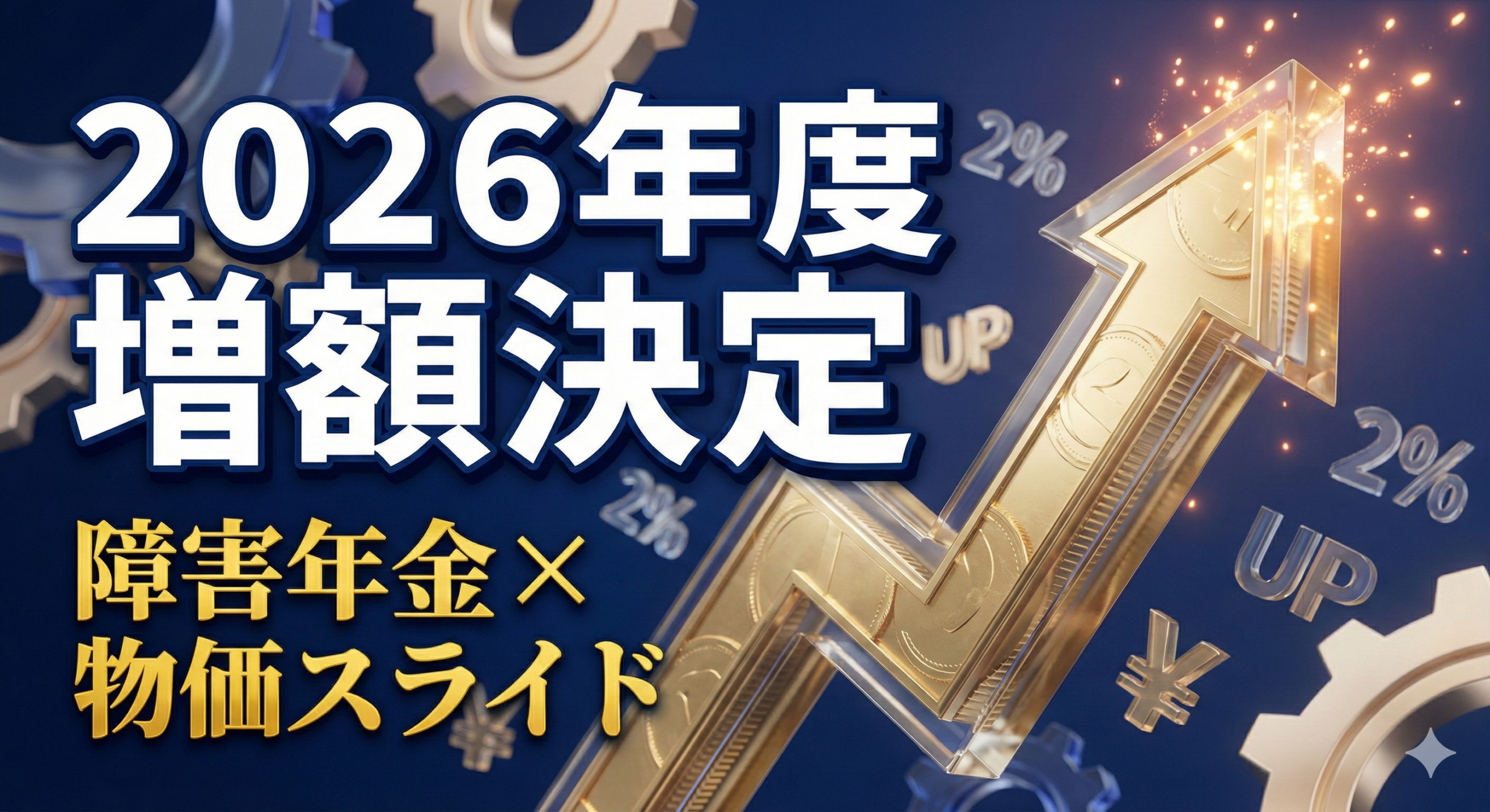 2026年度(令和8年度)の障害年金は、物価スライドと賃金スライドの仕組みにより前年度から増額されることが決定しました。厚生労働省が2026年1月23日に公表した内容では、障害基礎年金は前年度比プラス1.9%、障害厚生年金の報酬比例部分は前年度比プラス2.0%の引き上げとなっています。増額の理由は、2025年の消費者物価指数がプラス3.2%を記録したことを受けた物価スライドの適用にありますが、現役世代の賃金上昇率が物価上昇に追いついていないため、マクロ経済スライドの調整も加わり、物価上昇率そのものよりも低い改定率となりました。新しい金額は2026年4月分(同年6月支給分)から適用されます。この記事では、2026年度における障害年金改定の具体的な金額、増額の理由となった物価スライドの仕組み、マクロ経済スライドによる調整の影響、さらに関連する手当の改定まで詳しく解説します。