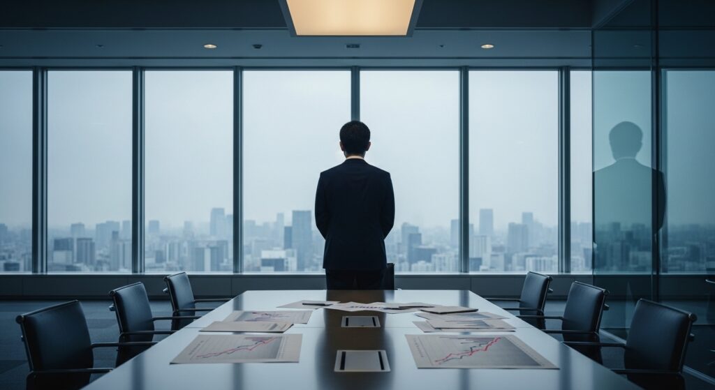 6500億円の純損失という歴史的赤字の背後では、経営体制の混乱も深刻化しています。2025年3月末には、日産の舵取りを担っていた内田誠前社長を含む執行役員らが退任しました。しかし、この退任は企業統治の観点から大きな問題を残しました。