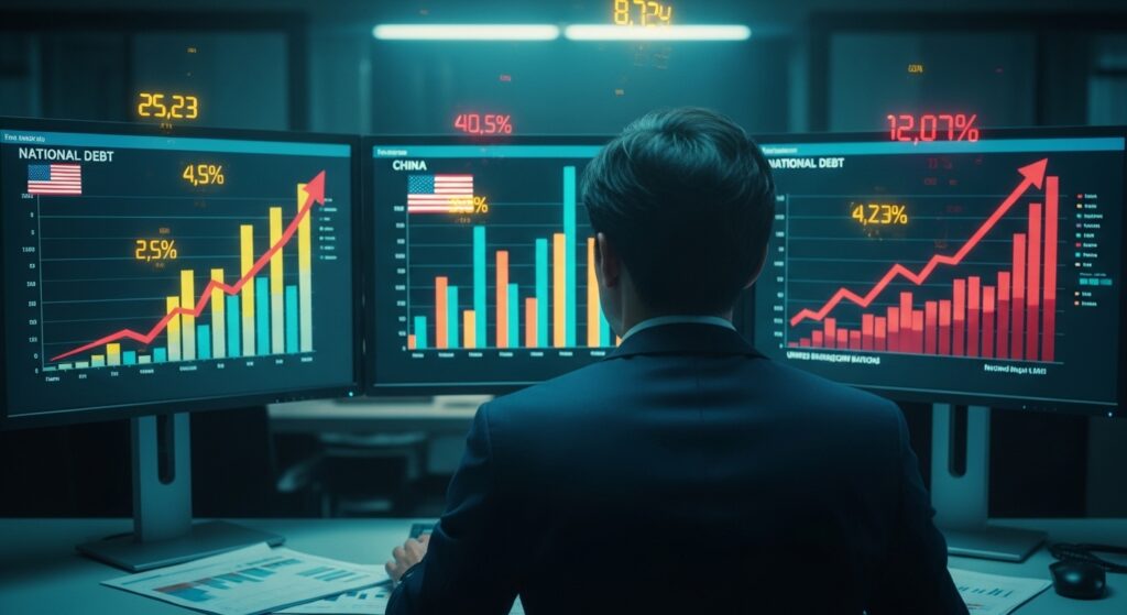 世界の総債務が5京円に達した背景には、各国固有の政治的・構造的要因が複雑に絡み合っています。主要国の債務状況を比較することで、グローバル債務の真の脆弱性が明らかになります。