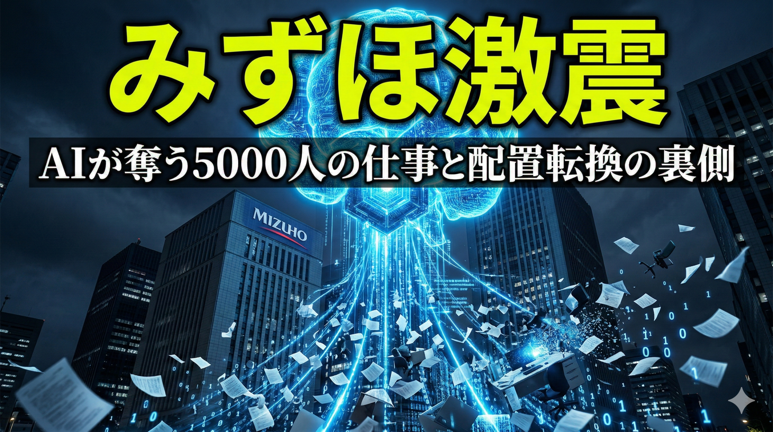 この記事では、みずほFGがなぜ事務職5000人の削減と配置転換に踏み切ったのか、その理由と背景を詳しく解説します。AI導入の具体的な内容や「事務」という呼称廃止の意味、リスキリングプログラムの全容、メガバンク3行の戦略比較、そして労働市場への影響まで多角的に掘り下げていきます。