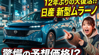 日産新型ムラーノは2027年初頭に12年ぶりの日本発売が見込まれています。予想価格は650万円〜800万円で、北米からの逆輸入モデルとなる見通しです。2.0L VCターボエンジンやインビジブルフードビューなど最新装備を搭載した第4世代モデルのデザイン、スペック、競合比較、e-POWERの可能性まで詳しく解説します。