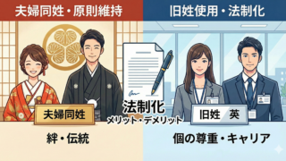 生活 夫婦同姓原則維持で旧姓使用を法制化 メリット・デメリットを徹底解説 夫婦同姓の原則を維持しながら旧姓使用に法的効力を与える「旧姓使用法制化」について解説。キャリア継続や伝統的家族観の維持といったメリットから、国際的通用性の欠如やシステム改修コスト、女性への負担偏重などのデメリットまで、2026年法案化に向けた論点を詳しく紹介します。 2025.12.03 生活