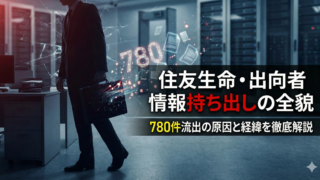 住友生命の出向者による情報持ち出しは780件に達し、生保業界で最大規模の事案となりました。原因は出向制度による構造的な利益相反で、2022年から約3年間にわたり私用スマホでの撮影等で代理店の内部情報が無断で持ち出されていました。本記事では原因と経緯、再発防止策、業界への影響を詳しく解説します。