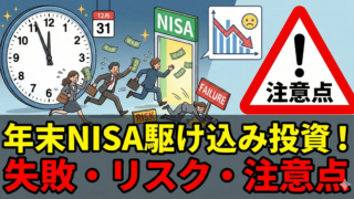 生活 NISA年末駆け込み投資の失敗例とリスク|注意点を徹底解説 NISA年末駆け込み投資とは、非課税枠を使い切ろうと年末に慌てて投資することです。受渡日の確認不足、暴落時のパニック売り、高値掴みなどの失敗例があります。本記事では失敗例やリスク、注意点を詳しく解説し、余剰資金での投資や長期視点の重要性をお伝えします。 2025.12.14 生活