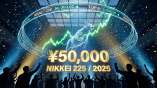 2025年12月30日の東証大納会で、日経平均株価は終値5万0339円48銭を記録し、史上初めて5万円台を維持したまま年末を迎えました。年初から26.02%上昇した背景には、半導体スーパーサイクルやサナエノミクス、日銀の金融政策正常化があります。本記事では2025年の市場動向と2026年の展望を詳しく解説します。