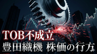 豊田自動織機のTOBは2026年2月時点で応募率33.10%にとどまり不成立の危機に直面しています。SOTP分析による適正価値は1株26,000円超で、株価はTOB価格18,800円を上回る20,210円で推移中です。トヨタ自動車への株価影響やグループ再編の今後の展望を詳しく解説します。